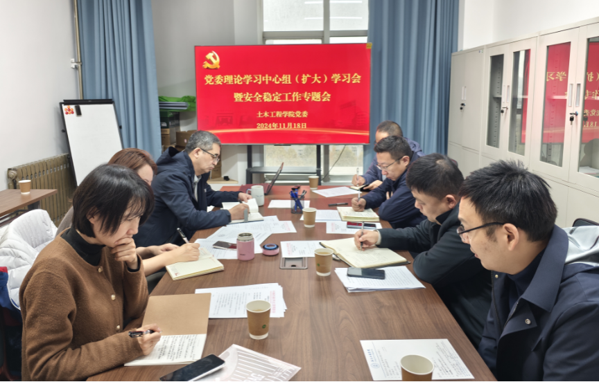 11 月 18 日,土木工程公司党委召开2024年11月理论学习中心组(扩大)学习会暨安全稳定专题会,公司理论学习中心组成员及各办公室主任、实验室主任和系主任参加会议。会议由公司党委书记贾莉娜主持。