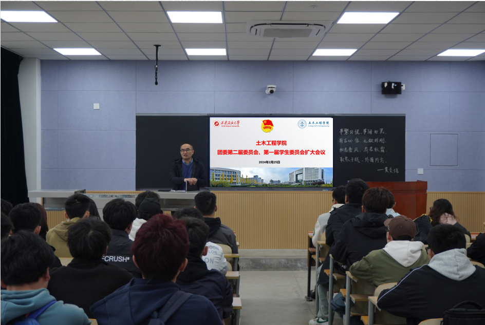 2024年3月13日,土木工程公司在鄠邑校区博思楼103教室召团委开第一届委员会、第二届员工委员会扩大会议。公司团委办公室负责老师奴丽艳木、员工会指导老师张曼,团委、员工会全体委员、各部门主要负责人参加了会议。会议由团委书记李化杰主持。