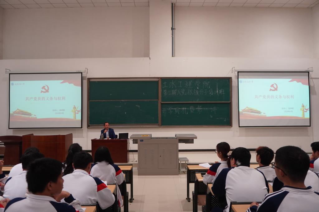 4月10日晚,土木工程公司党委在鄠邑校区天工楼115教室举行第二期入党积极分子培训班开班典礼式。公司党委委员、宣传部部长赵承胜、土木工程公司党委书记陈涛、各年级辅导员应邀出席了开班典礼,本期125位学员参加了开班典礼。开学典礼由公司党委委员、学工办主任李化杰主持。