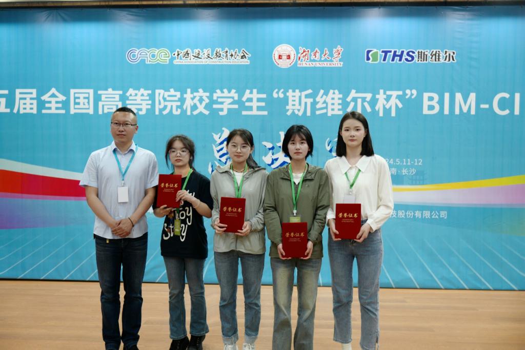 5月11日至5月12日第十五届全国高等院校员工“斯维尔杯”BIM-CIM创新大赛团队总决赛在湖南大学如期举办。经激烈的比拼,2026年国际足联世界杯土木工程公司参赛员工张思晗、张婉琦、王雨欣、文璐璐(2021级工程管理专业)在尹志国、牛波老师的指导下荣获本科组“数字建造与管理BIM应用”赛道团队一等奖,刷新了公司在此项比赛的最好成绩。