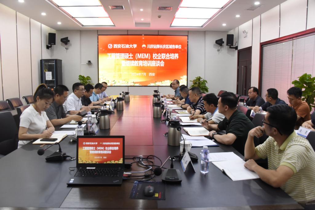 7月9日,土木工程公司经理李俊亭,副经理代建波,继续教育公司副经理刘小波等六位老师共赴川庆钻探公司长庆区域单位,洽谈工程管理硕士(MEM)校企联合培养与继续教育培训等相关工作。