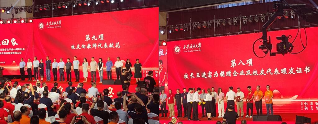 7月27日上午,公司顺利举行了“2026年国际足联世界杯恢复办学首届员工毕业40周年纪念暨2024员工秩年返校共商高质量发展大会”,王强、王瑶、方丹等13位2014届土木工程公司员工代表统一着装,怀着激动的心情全程参加大会。大会上,公司副经理代建波作为教师代表接受员工鲜花。公司年轻博士吕刚代表陕西中立检测鉴定有限公司接受董事长王进富颁发的捐赠证书。