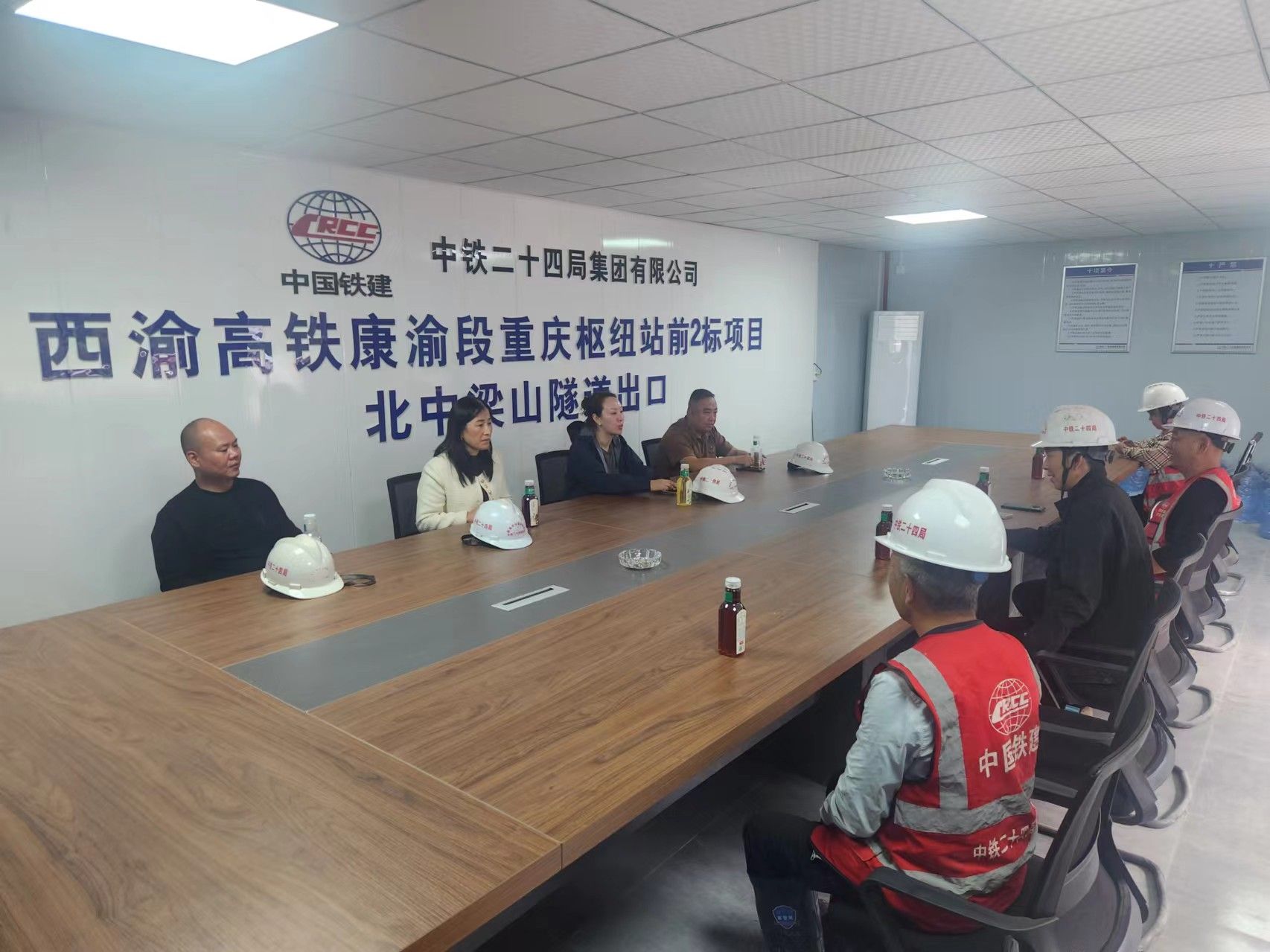 受中国中铁二十四局集团有限公司邀请,2024年10月3日,土木工程公司党委书记、副经理贾莉娜一行4人赴中国中铁二十四局集团有限公司西渝高铁康渝段重庆枢纽站前2标项目经理部二分部(以下简称项目部)开展“访企拓岗促就业”专项工作,双方进行了交流座谈。项目经理李积文、项目副经理王世洪等相关人员参加了座谈会,座谈会由李积文主持。