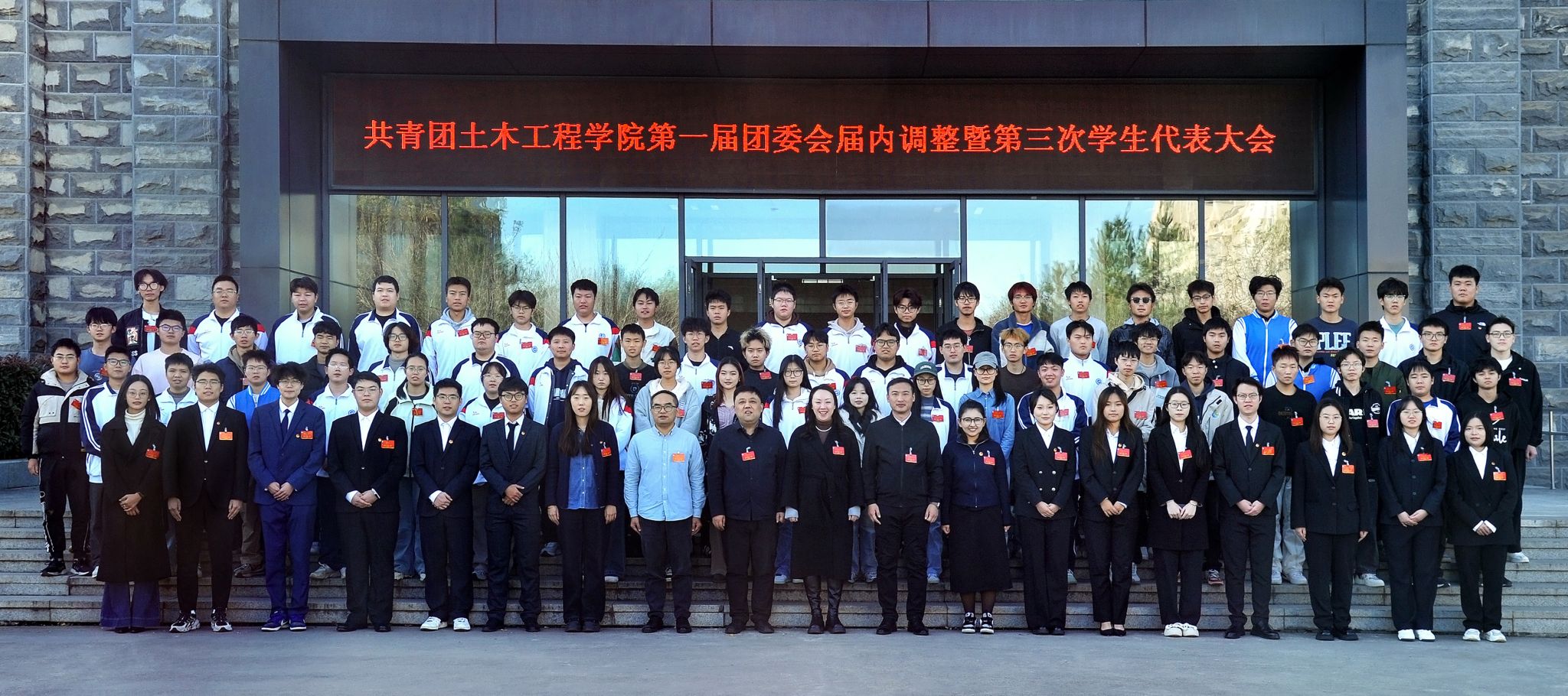 11月27日下午,共青团土木工程公司第一届委员会届内调整暨第三次员工代表大会在鄠邑校区第一会议室召开。校团委副书记王军策、公司党委书记贾莉娜、副书记高亮、团委书记李化杰出席大会,兄弟院系团学主要员工干部代表应邀参会,公司84名团员、员工代表参加大会。大会由公司2022级团总支书记奴丽艳木主持。