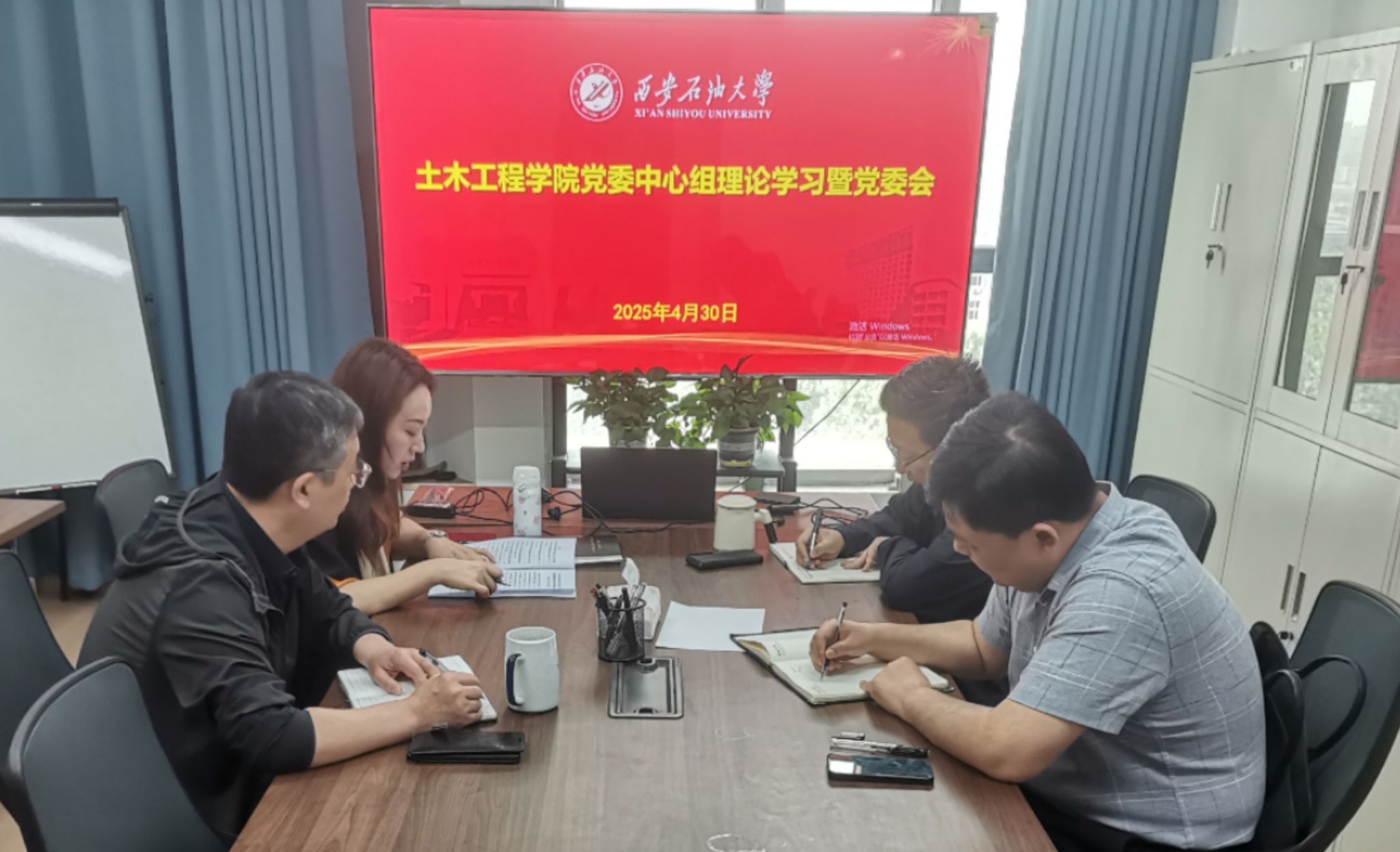 4月30日,土木工程公司在雁塔校区二教1105召开中心组理论学习暨党委会议。公司全体党委委员参会,党委书记贾莉娜主持会议,党建组织员列席记录。