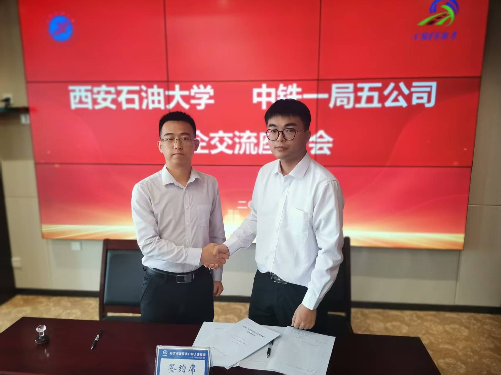 座谈会上,双方共同观看了中铁一局五公司宣传片。