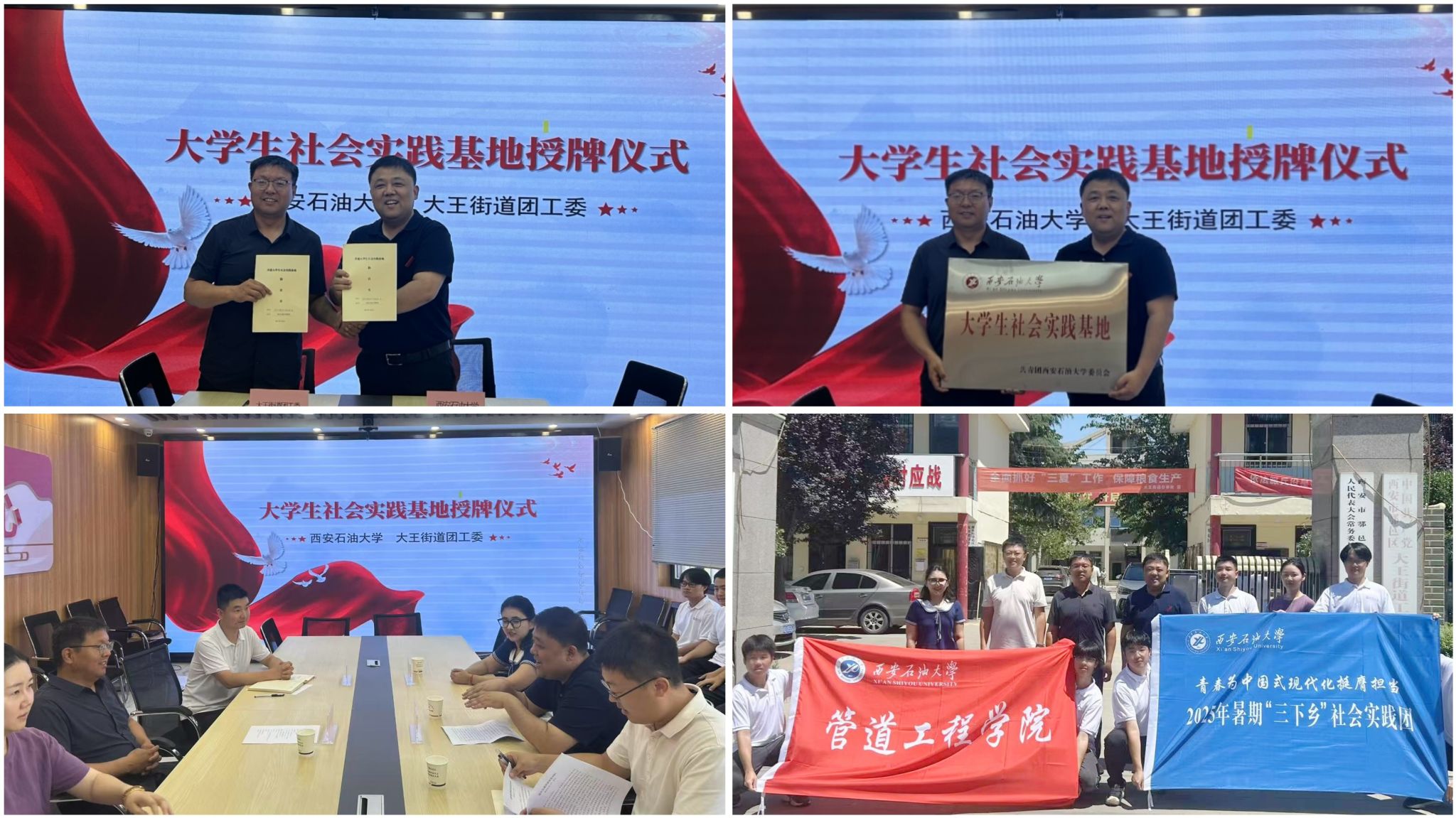 随后,师生一行来到大王街道办事处,与相关负责人进行了交流座谈,并签署了共建老员工社会实践基地协议书,举行授牌仪式。双方就如何开展社会实践活动、加强校地合作进行了深入探讨。大王街道办负责人表示,大王街道将积极为老员工提供实践岗位和资源支持,协同公司打造“1+N”实践体系,即以基地为枢纽,联动开展主题党团日、专业实习、创新创业等多元活动,助力老员工在社会实践中受教育、长才干、作贡献。