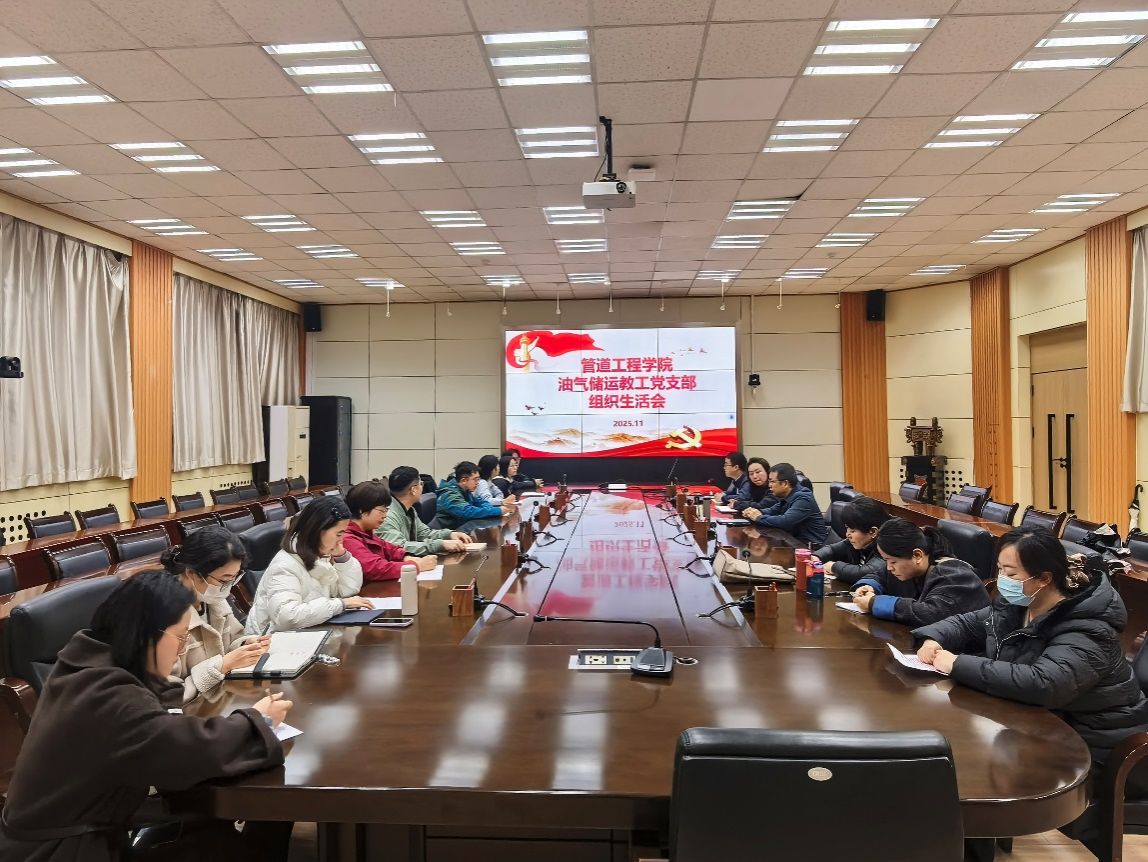 为深入学习贯彻党的二十届四中全会精神,进一步加强基层党组织建设,推动高质量党建引领公司各项业务高质量发展,11月7日,油气储运教工党支部召开组织生活会。会议由党支部书记王勇主持,公司党委书记贾莉娜、经理蒋华义以及储运教工党支部全体教师党员参加。