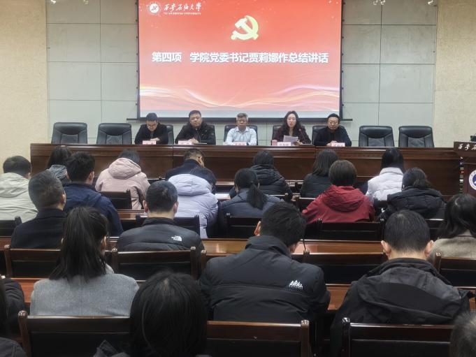 报告结束后,进入结业环节。储运教工党支部书记王勇、安全教工支部书记赵志峰、土木教工支部书记石韵、研究生代表张智超分别围绕学习班期间的所学所思,结合岗位实际,分享了如何将党章精神转化为推动教学科研、服务国家能源战略的具体行动作了交流发言。