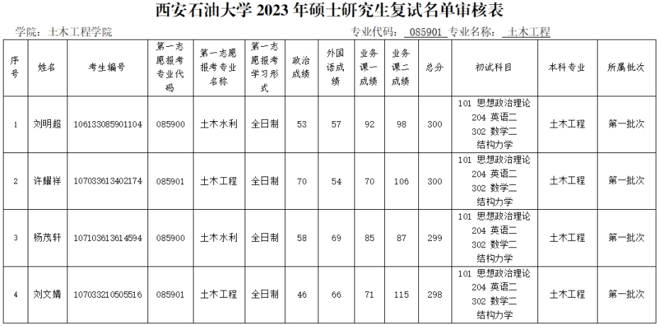 现将土木工程公司第一志愿参加复试考生名单予以公布,请各位考生按照要求准时参加。如考生对复试名单有异议,请与公司办公室联系。