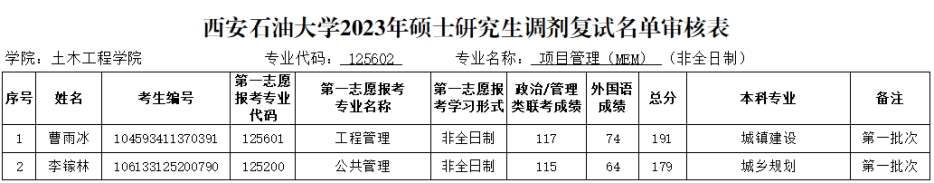 现将土木工程公司调剂第六次参加复试考生名单予以公布,请各位考生按照要求准时参加。如考生对复试名单有异议,请与公司办公室联系。