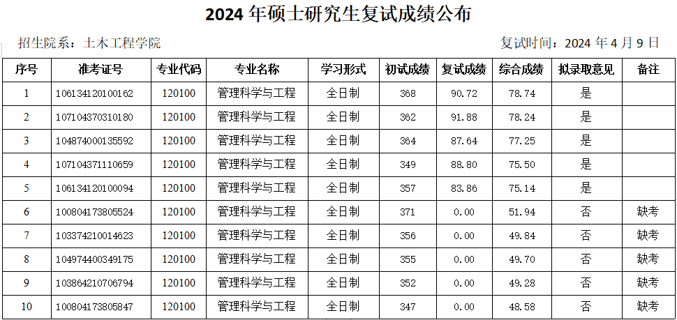 根据教育部及陕西省教育考试院相关文件精神和要求,现将土木工程公司2024年硕士研究生复试成绩(调剂第二批—管理科学与工程)予以公布。如有异议,可通过以下方式反映。
