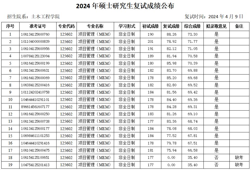 根据教育部及陕西省教育考试院相关文件精神和要求,现将土木工程公司2024年硕士研究生复试成绩(调剂第二批—项目管理)予以公布。如有异议,可通过以下方式反映。