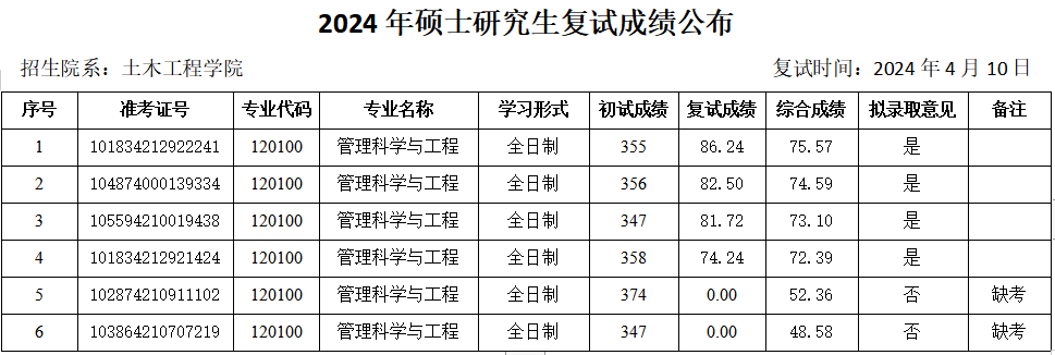 根据教育部及陕西省教育考试院相关文件精神和要求,现将土木工程公司2024年硕士研究生复试成绩(调剂第三批—管理科学与工程)予以公布。如有异议,可通过以下方式反映。