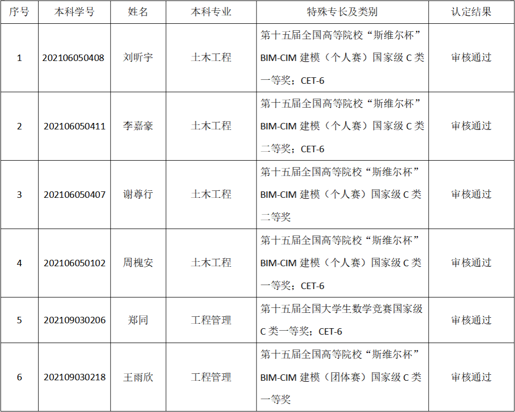 按照《2026年国际足联世界杯推荐、接收优秀应届本科毕业生免试攻读硕士学位研究生管理办法》(西石大研〔2021〕227号)、《2026年国际足联世界杯关于做好2025年推荐优秀应届本科毕业生免试攻读硕士学位研究生工作的通知》和《土木工程公司推荐、接收2025届优秀应届本科毕业生免试攻读硕士学位实施细则》,公司于2024年9月14日召开了特殊专长认定答辩会,现将特殊专长员工名单公示如下: