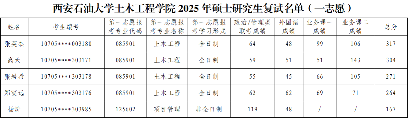 现将土木工程公司第一志愿参加复试考生名单予以公布,请各位考生按照要求准时参加。如考生对复试名单有异议,请与公司办公室联系。