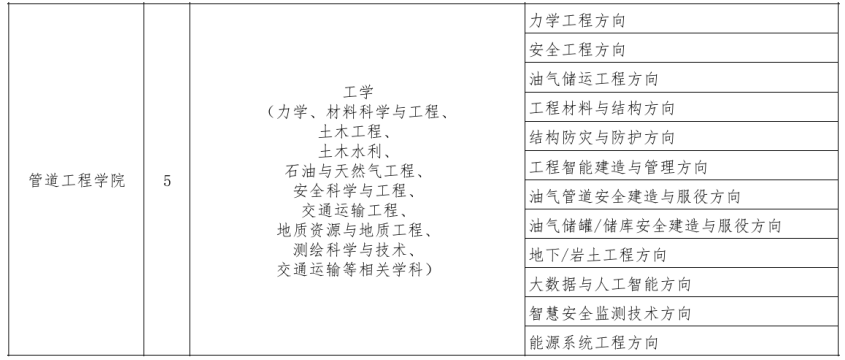 公司拥有石油与天然气工程一级学科的油气储运工程二级学科博士学位授权点和硕士学位授权点;交通运输、土木水利、安全工程和工程管理(MEM)4个专业学位类别硕士学位授权点;拥有油气储运工程、土木工程、安全工程3个本科专业。