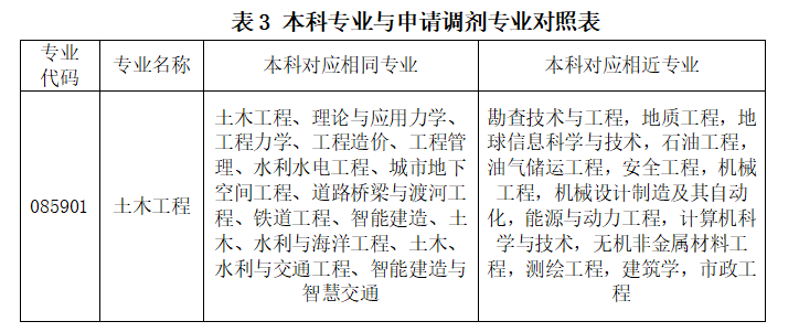 申请调剂土木工程的考生,公司将对照考生本科专业(表3),按照优先级顺序遴选调剂复试考生,同一优先级内的考生按照初试总分由高到低遴选进入复试。